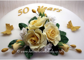 Golden Anniversary Square Cake with Sugar Flower Roses