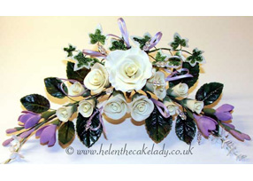 Ivory and Lilac theme with Roses, Freesias, Rose Leaves and Varigated Ivy.