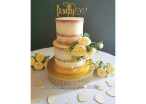 4-tier Naked Wedding Cake with Fresh Fruit and Flowers
