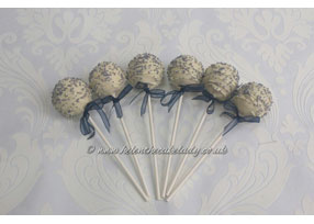 Navy and Silver Diamonte and Damask Stenciled Wedding Cake - Cake Pops