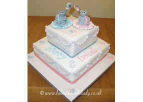 Twins Christening Cake - Tatty Bear