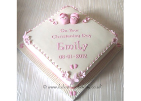 Girls square Christening cake with Booties