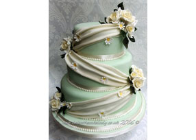 Mint and Ivory Swag Wedding Cake, with Roses and Daisys