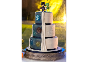 Single-Tier Navy, Gold and Burgundy Colour Scheme